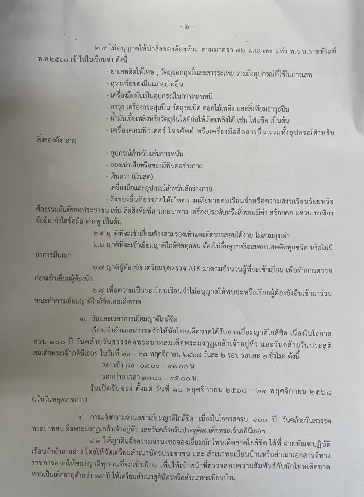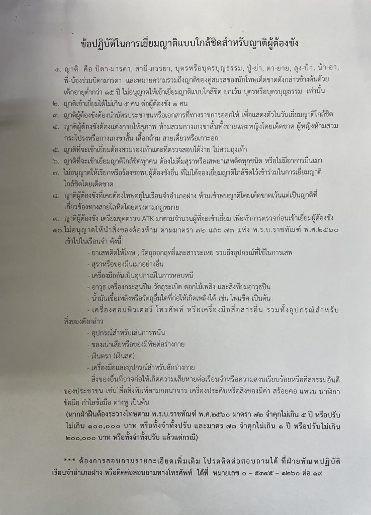 • ตรวจสอบรอบวันและเวลาเยี่ยมของผู้ต้องขังแต่ละแดนตามตารางในประกาศให้ละเอียด